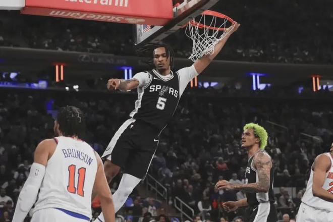 在备受瞩目的NBA杯西部半决赛中,圣安东尼奥马刺队团结协作、奋勇拼搏,最终成功击败了全联盟战绩第一的俄克拉荷马雷霆队,赛后文班亚马以极具统治力的表现赢得铺天盖地的赞誉,那我就套用一个网络经典名梗:“当所有人都在夸文班亚马时,我来夸一夸马刺队二年级新秀卡斯尔.”